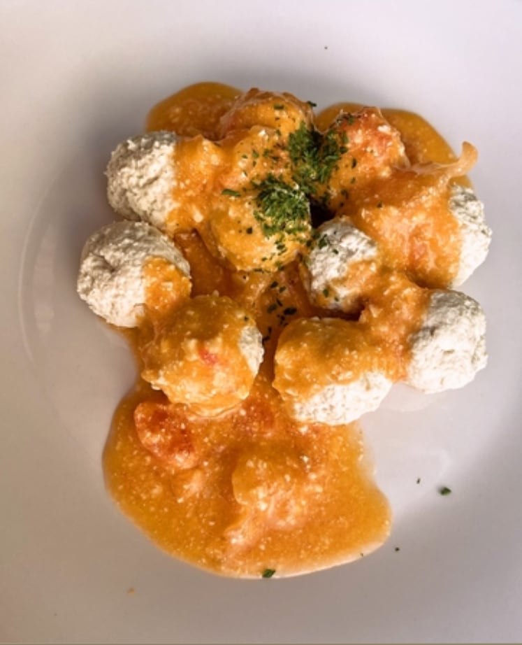 皮剥きトマトとカッテージチーズのソースを添えて、特別な日もそうでない日も。